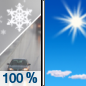 Rain and snow showers, mainly before 10am. High near 44. North northwest wind 10 to 15 mph. Chance of precipitation is 80%. New snow accumulation of less than a half inch possible.