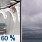 A 40 percent chance of showers. Mostly cloudy, with a low around 29. North wind around 5 mph becoming calm.