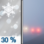 A 30 percent chance of snow. Mostly sunny, with a high near 37.